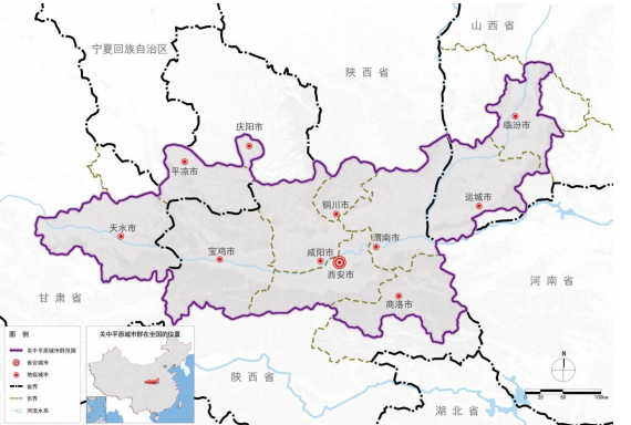 西安、咸阳位置示意图 图片来源:《关中平原城市群发展规划》