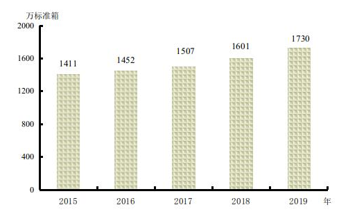 2015-2019年天津港集装箱吞吐量