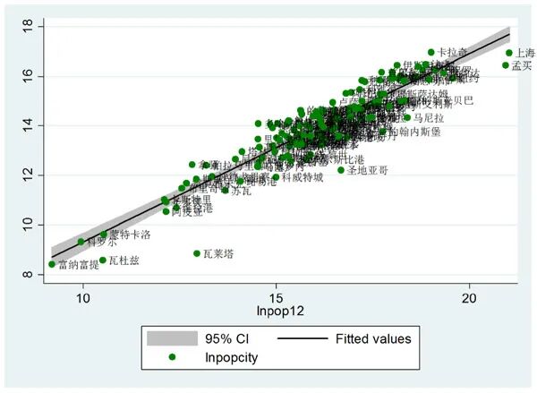若对该数据上的城市进行进一步对比,还能发现更细节的信息。陆铭指出,决定这些“点”在“线”的上面还是下面,第二重要的变量就是城市化水平或经济发展水平——线上面的点基本上都是发达国家,城市化率高,而下面则都是发展中国家,城市化率相对较低。