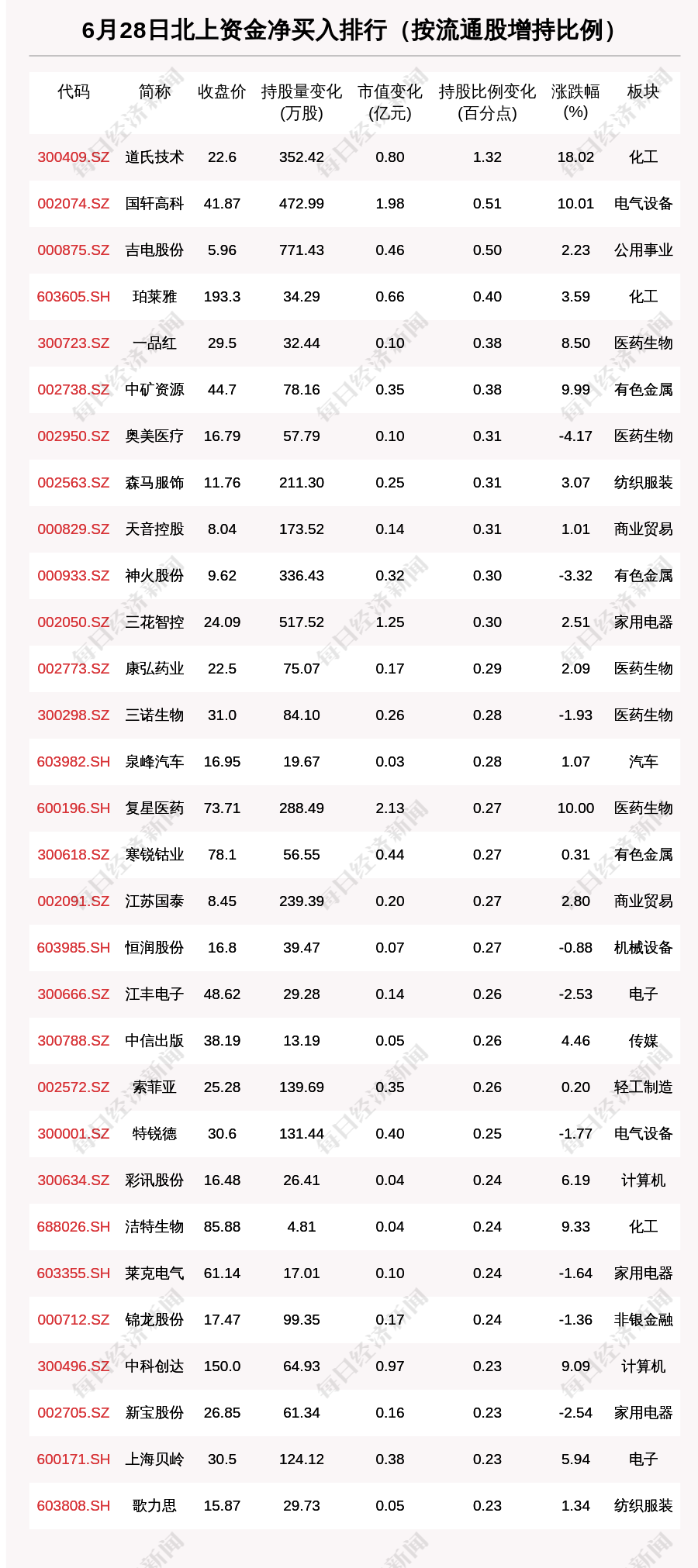 北向资金动向曝光:6月28日这30只个股被猛烈扫货(附名单)