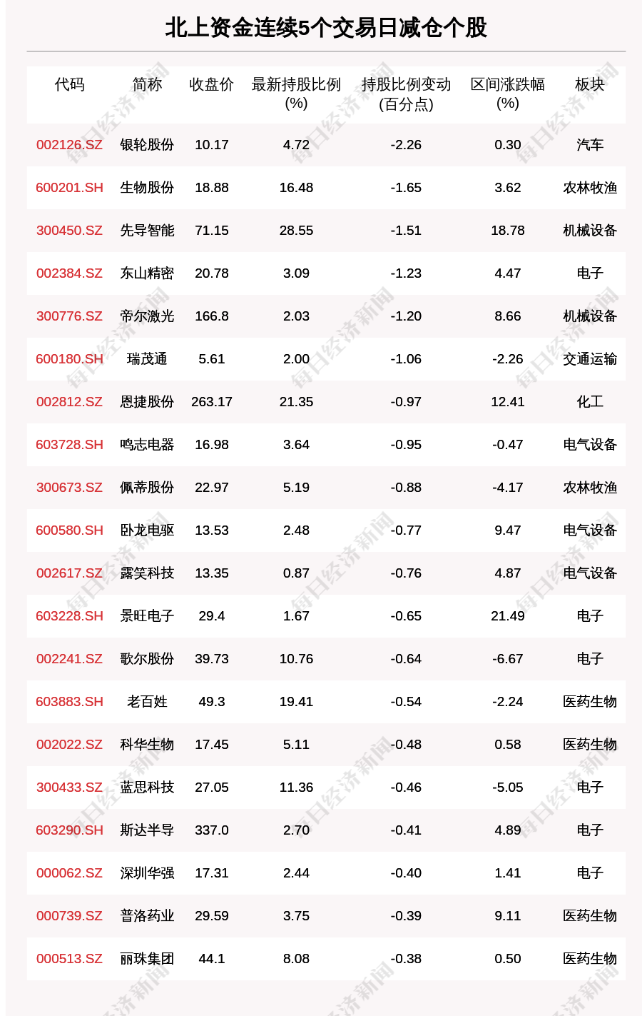 揭秘北上资金:连续5日减仓这些个股(附名单)