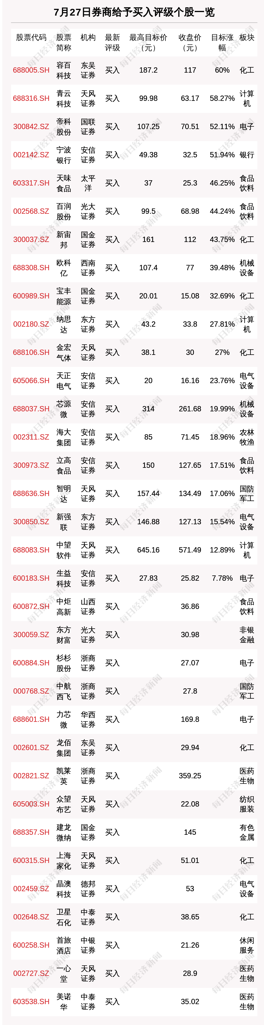 7月27日46只个股获券商关注,容百科技目标涨幅达60%