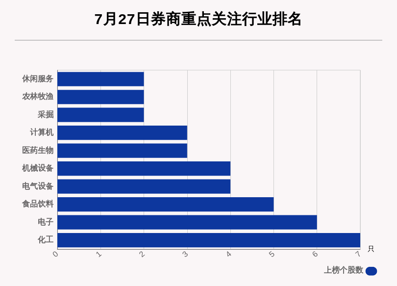从券商对行业的关注度来看,券商关注个股数居前的行业分别是化工、电子、食品饮料。