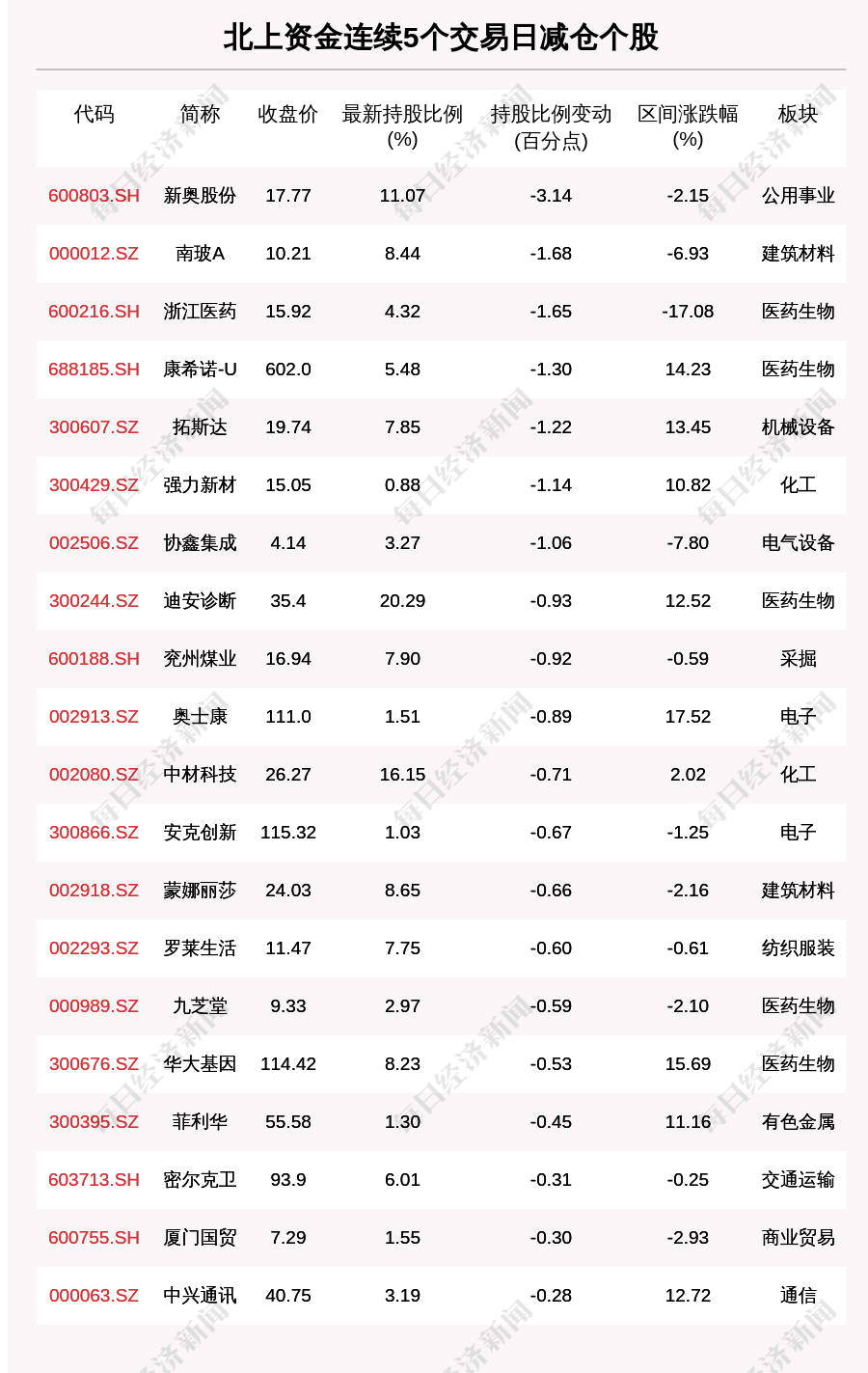 揭秘北上资金:连续5日减仓这48只个股(附名单)