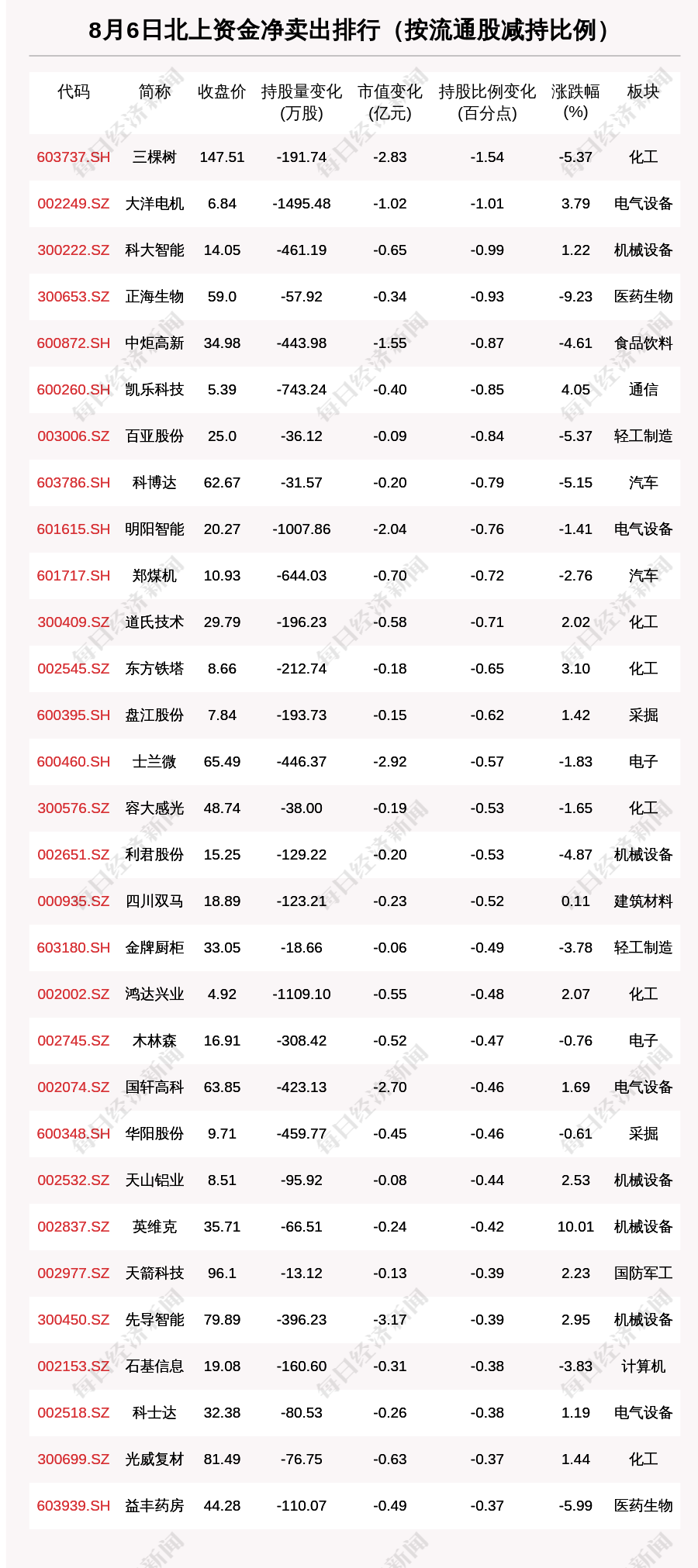 北向资金动向曝光:8月6日这30只个股遭大甩卖(附名单)