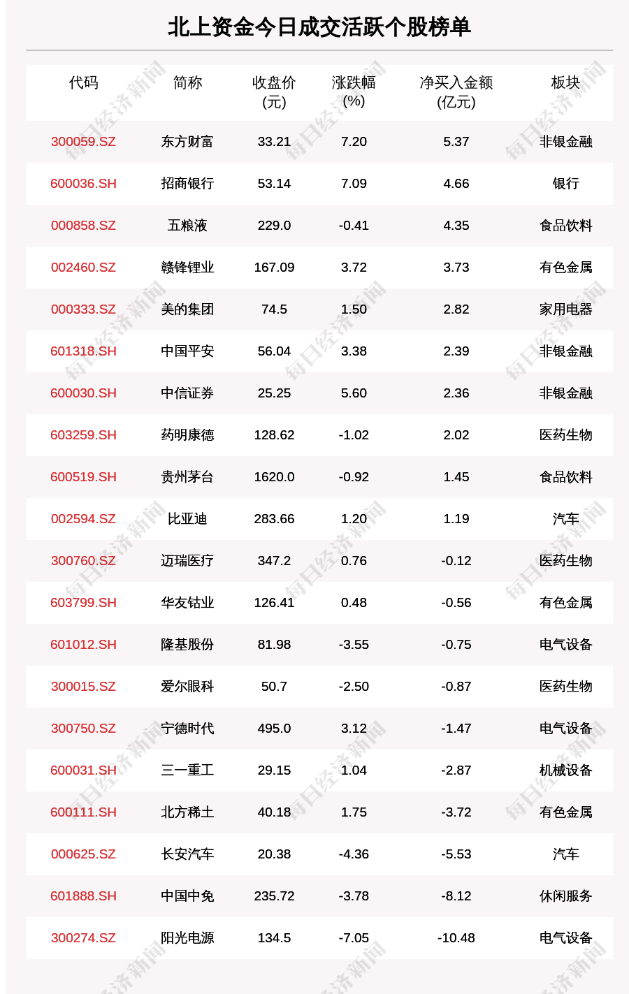 8月18日,北上资金成交活跃个股榜单中,净买入个股共10只,金额最多的是东方财富(300059.SZ,收盘价:33.21元),净买入5.367亿元;净卖出个股共10只,金额最多的是阳光电源(300274.SZ,收盘价:134.5元),净卖出10.481亿元。