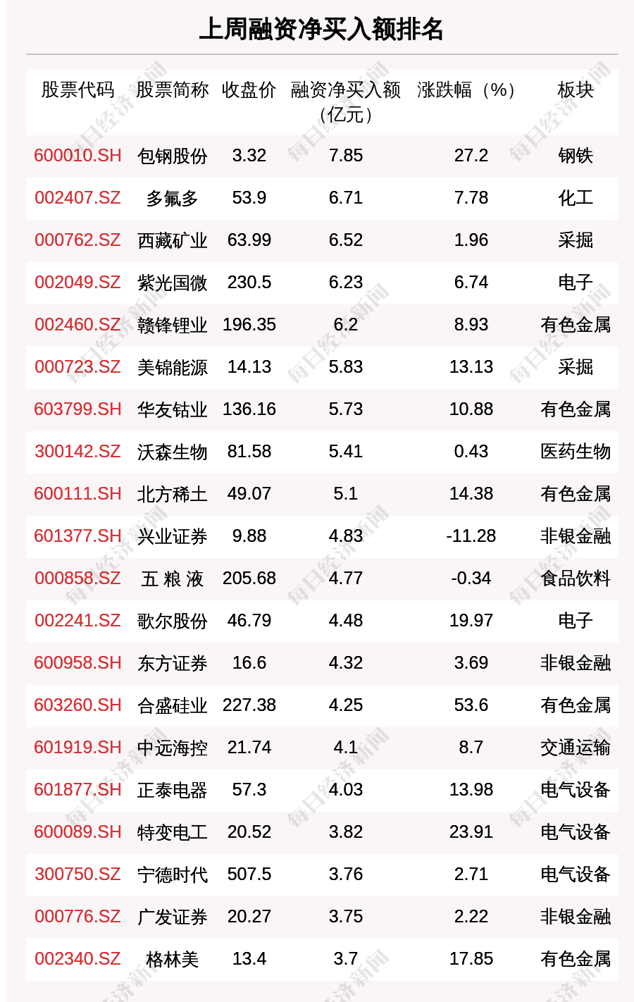 上周两市共有1063只个股有融资资金净买入,共有0只个股净买入金额超10亿元,其中包钢股份、多氟多、西藏矿业排名前三,买入金额分别为7.85亿元、6.71亿元、6.52亿元。
