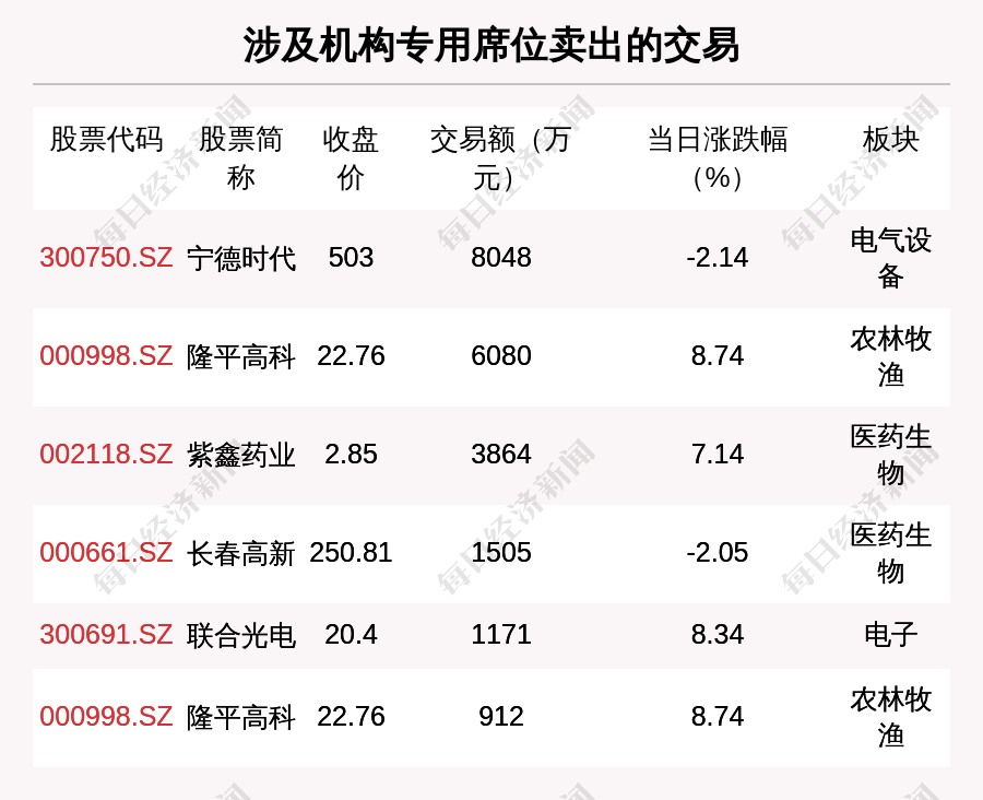 每经AI快讯,2021年9月8日,沪深两市一共发生159笔大宗交易,共成交47.31亿元,涉及100家上市公司。