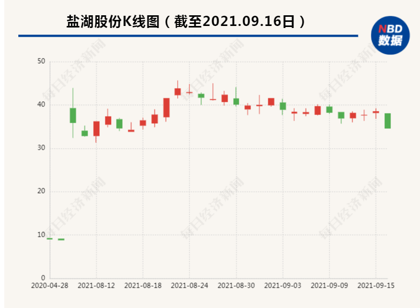 9月16日,盐湖股份(000792)尾盘跌停。截至16日收盘,盐湖股份报34.6元/股,总市值1881亿。