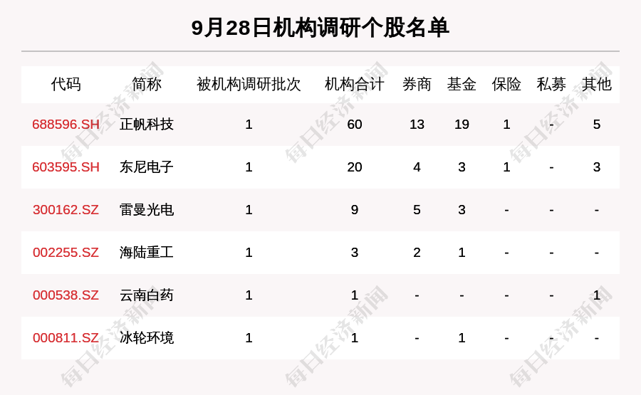 9月28日机构调研这6家公司,正帆科技获得60家机构关注