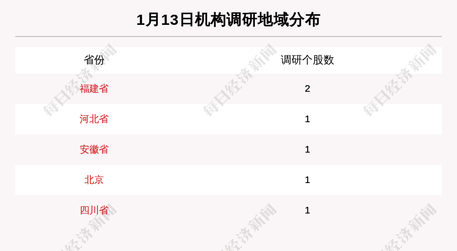 从地域分布上来看,机构调研主要集中于福建省、河北省、安徽省。