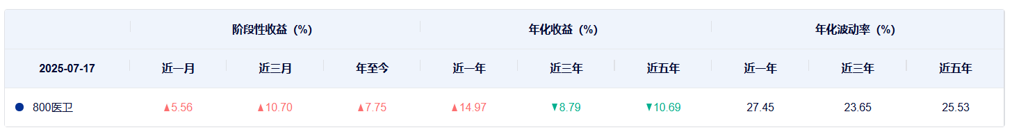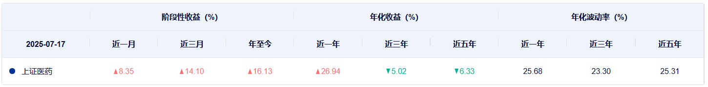 再看两个指数的过往表现,上证医药卫生行业指数从近一年到近五年,收益都好于中证全指医药卫生指数。