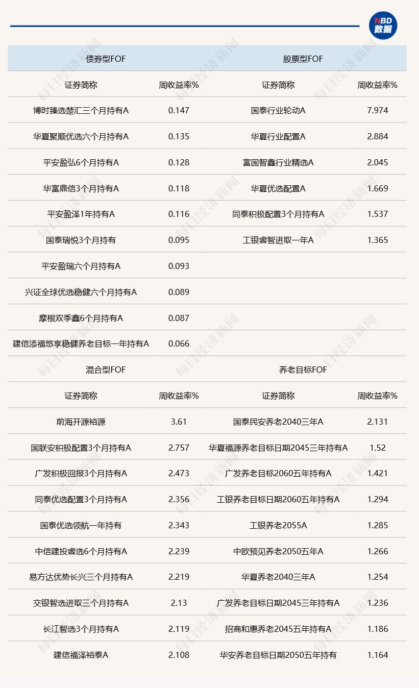 公募FOF上周投资胜率高,有产品收益率接近8%