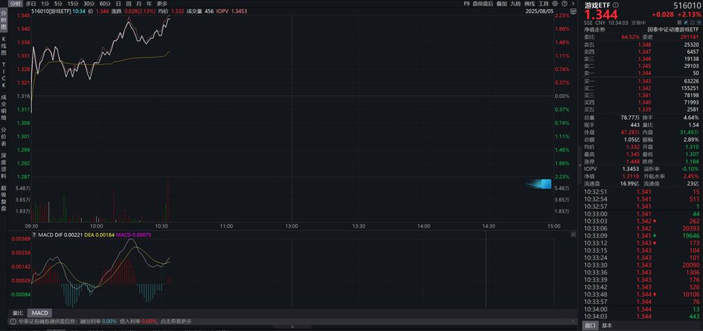2025H1中国游戏收入、用户数均创新高,游戏ETF盘中强势领涨超2%