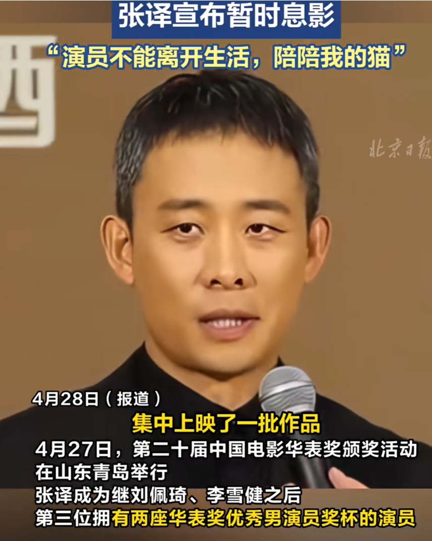 据南方都市报,张译在接受采访时透露自己将暂时息影。