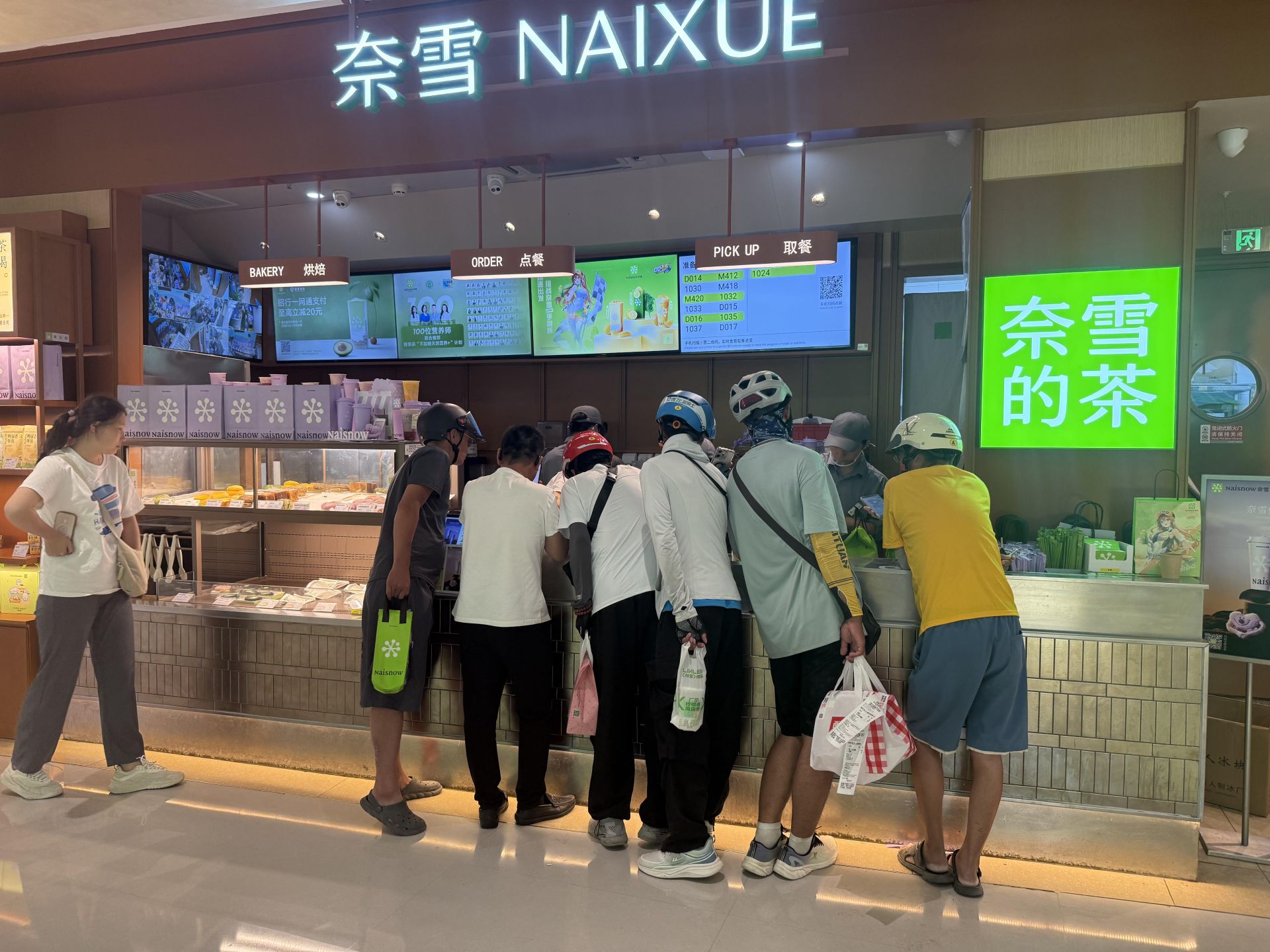 8月7日,《每日经济新闻》记者走访北京多家奶茶店看到,几乎每一家热门奶茶门店前,都上演着相似的场景:骑手们如潮水般围堵在出餐台,此起彼伏地高喊着取餐号,汗水浸透衣衫;店员们或手忙脚乱地寻找对应的奶茶订单,或飞速运转制作一杯杯奶茶。