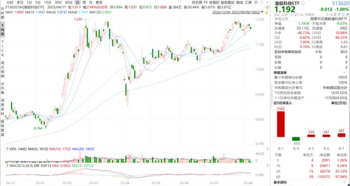 港股小幅回调,资金逆势抢筹港股科技ETF(513020)