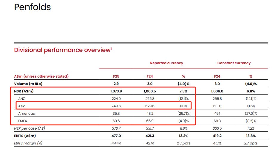 这背后,离不开中国市场的“助力”。在奔富2025财年10.74亿澳元的净销售收入中,以中国为代表的亚洲市场贡献了近七成收入,并成为奔富众多关键市场中唯一实现增长的区域。