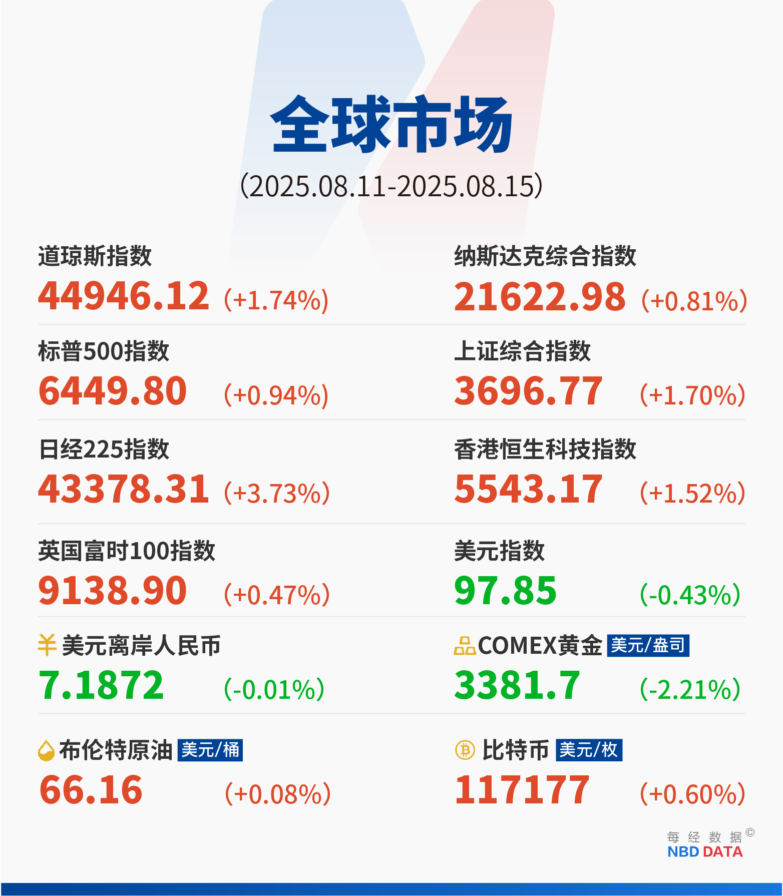 欧美股市齐涨、黄金原油下跌,市场提前为“普特会”定价