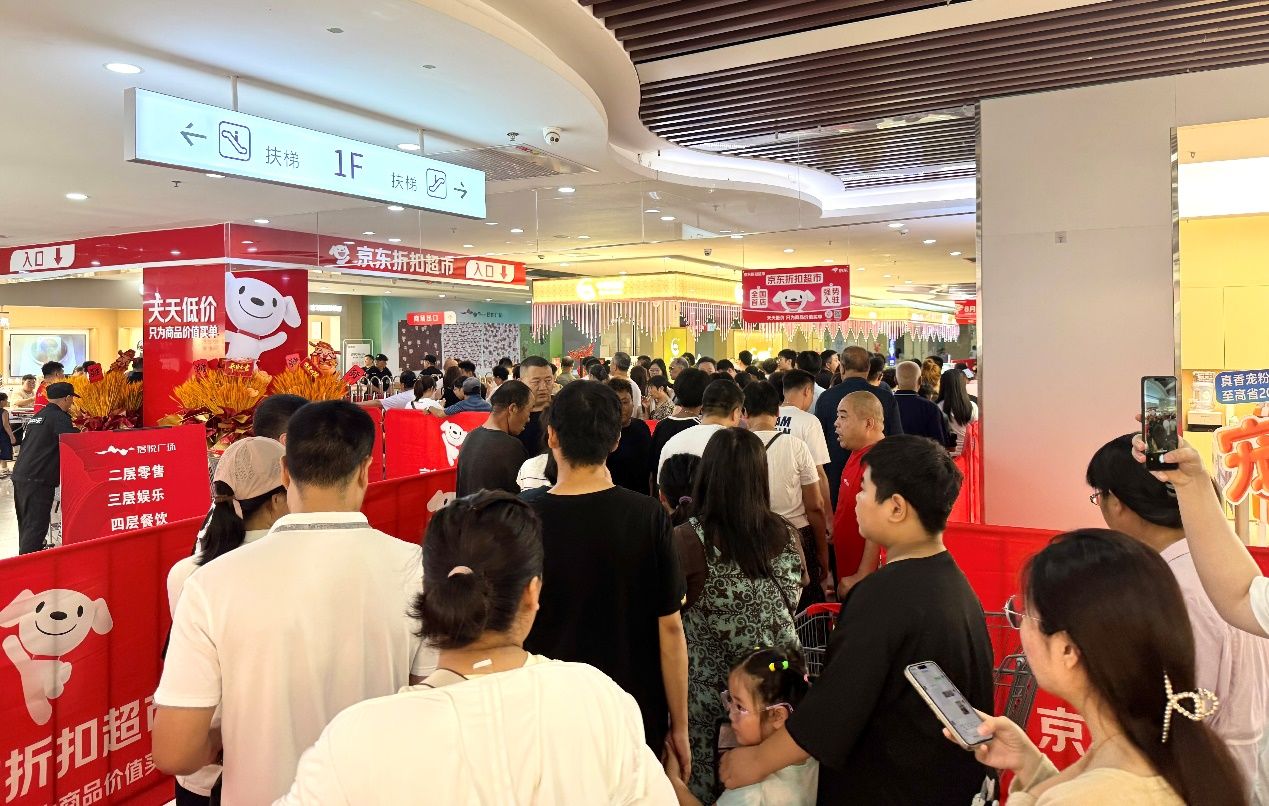 同样热闹的,还有刚开业两天就接待顾客超10万人的京东首家大型折扣超市。这家店位于河北涿州,距京东大本营——北京亦庄并不远。8月底,刘强东的老家江苏宿迁,京东折扣超市还将“四店”齐开。