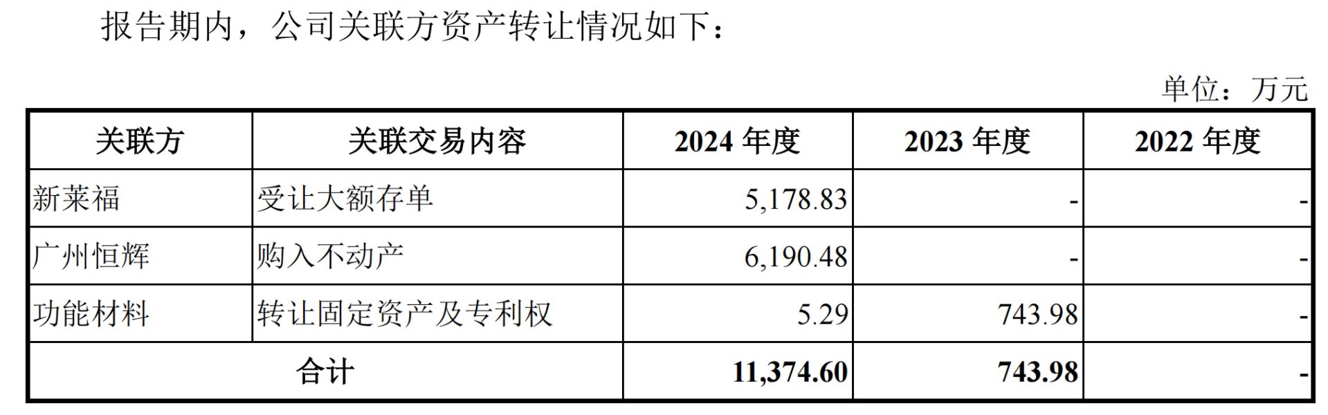 慧谷新材将所有理财产品赎回后,在2024年花费6190.48万元从其实控人曾控制的广州恒辉材料有限公司处购入了不动产。与此同时,慧谷新材在2024年末新增了7000万元一年以上大额存单。