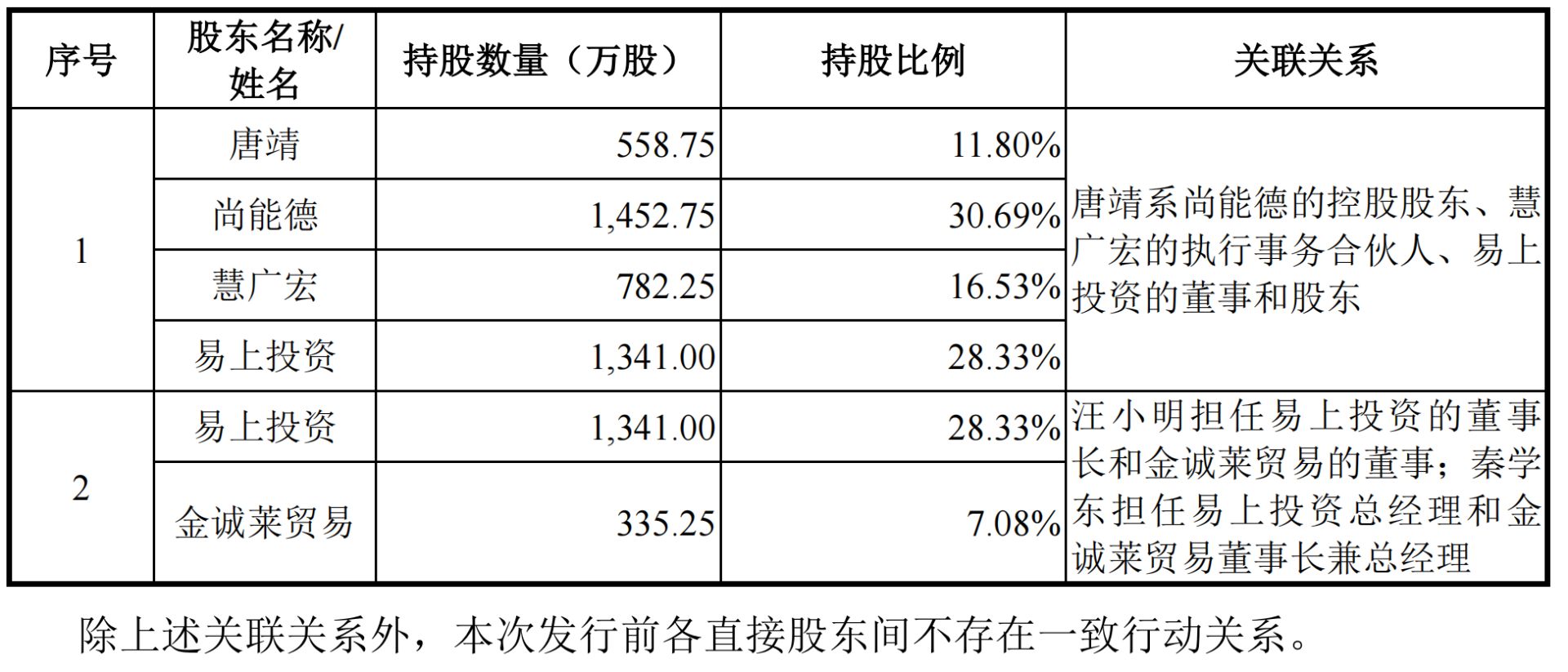 目前,慧谷新材和新莱福的实控人分别为唐靖和汪小明,但易上投资同时是慧谷新材和新莱福的第二大股东,分别持股28.33%和13.72%。同时,截至慧谷新材的招股书签署日,汪小明担任慧谷新材董事,汪小明及其配偶总共直接和间接持有慧谷新材3.56%的股份,而唐靖同样通过易上投资间接持股新莱福。