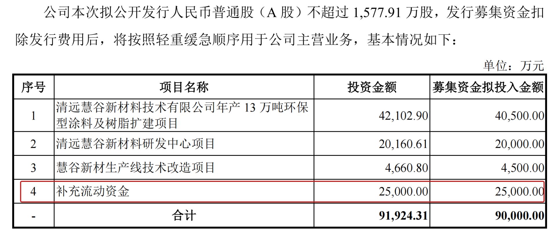 8月18日,慧谷新材方面在回复每经记者采访时表示,综合考虑公司未来业务规模增长趋势、营运资金缺口情况,本次拟通过募集资金补充部分流动资金,有助于补充日常经营所需营运资金,提高抗风险能力,更好地满足公司业务发展所带来的资金需求,为公司未来经营发展提供资金支持,保障公司稳健经营。