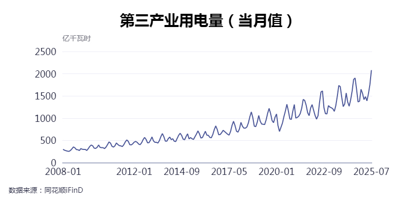 每经记者梳理数据发现,7月,第一产业、第三产业用电量创自2008年以来新高。