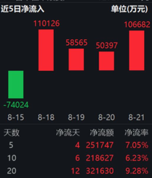 根据wind数据,截至8月21日,证券ETF(512880)连续4日净流入额超30亿元。今日盘中成交额突破50亿元,资金关注度紧密。
