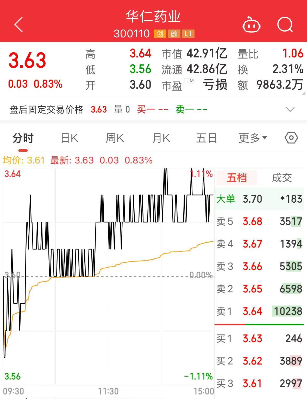 市场上,华仁药业26日收涨0.83%,报3.63元/股,总市值42.91亿元。