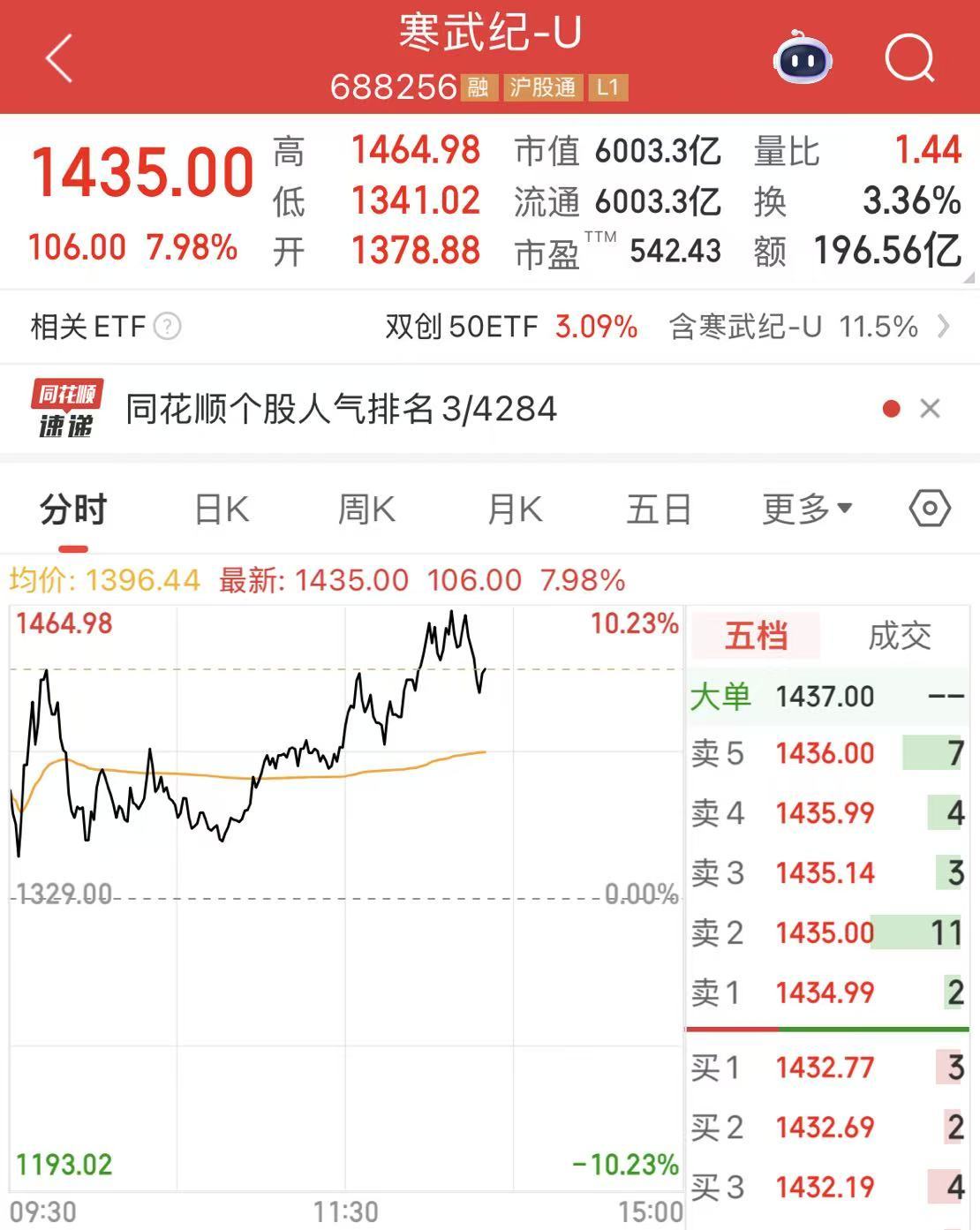 “新股王”诞生!寒武纪股价一度超越贵州茅台,市值超6000亿元!上半年营收暴增4347%,扭亏为盈