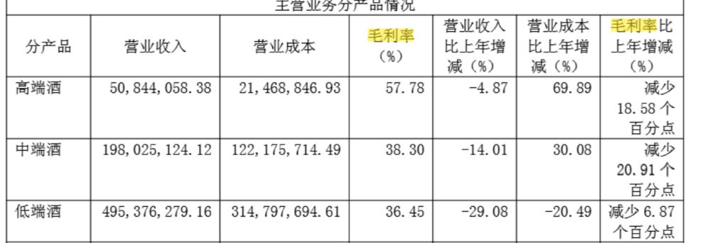 数据显示,上半年,公司高端酒系列——馥合香馥16、馥20实现营收3727.85万元,占白酒销售收入比重不到10%。公司白酒收入结构仍然以低端酒为主,上半年低端酒营收累计为2.51亿元,占营收比重超六成,低端白酒价格带在百元以下。2024年年报显示,其低端酒毛利率仅36.45%,而省内另3家白酒上市公司2024年销售毛利率在70%以上。不难发现,低端酒规模难以支撑利润。