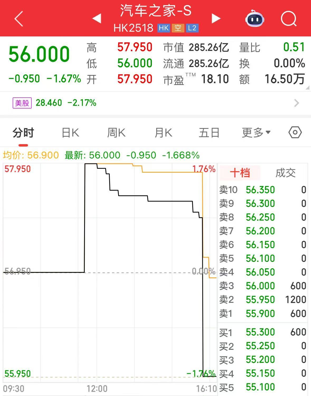 截至28日港股收盘,汽车之家股价下跌1.67%,市值285.26亿港元(约合人民币261亿元)。