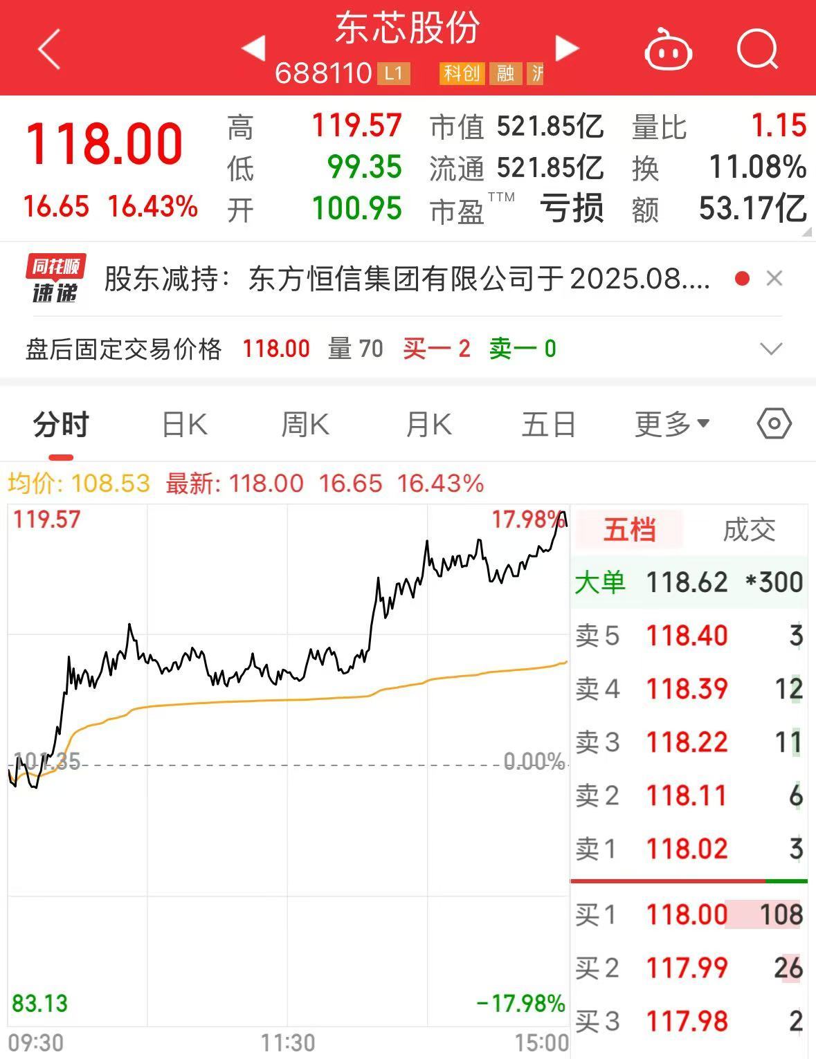盘面上,截至A股28日收盘,东芯股份股价大涨16.43%,报118元/股,总市值521.85亿元。