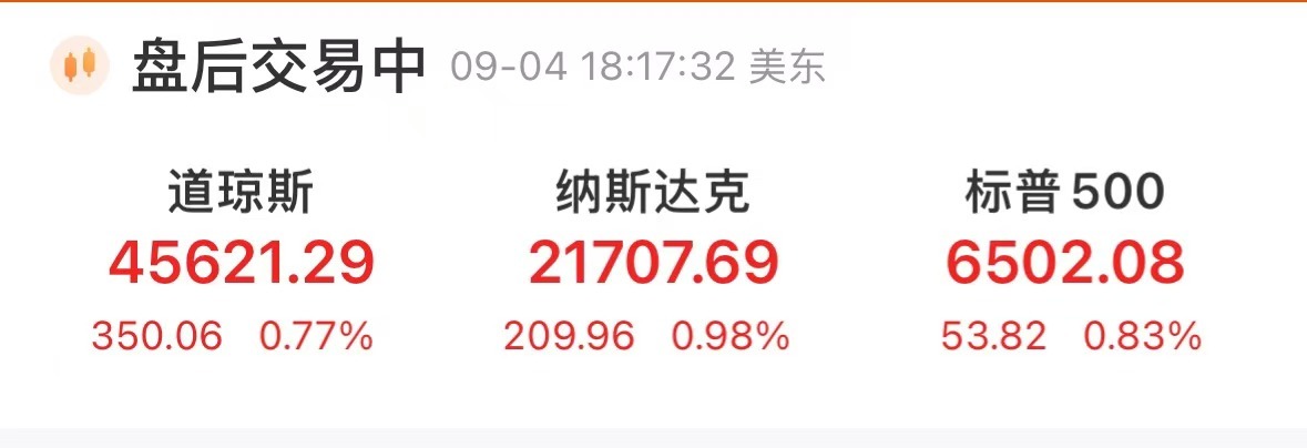 北京时间9月5日早,美股三大指数集体收涨,道琼斯指数涨0.77%,标普500指数涨0.83%创收盘新高,纳斯达克综合指数涨0.98%。芯片股走强,西部数据涨超5%,美光科技涨超4%。大型科技股走强,亚马逊涨超4%,创5月份以来最大涨幅。