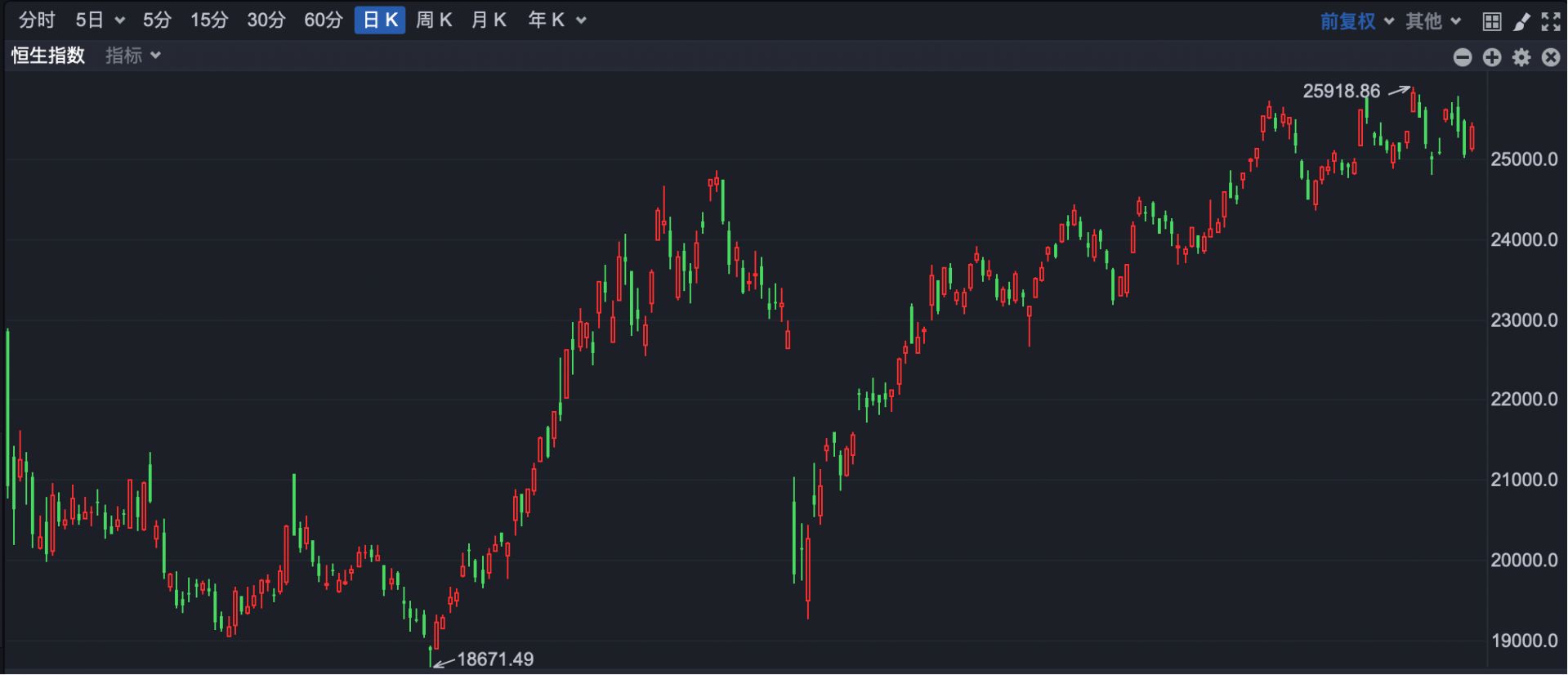 张忆东最新发声指出,今年港股年内的高点绝对不是在上半年,年内的高点大约在深秋。9月下旬开始,随着美联储的降息,港股有希望震荡向上,逐级上升。可能11月前后,恒指有希望上28000点,而恒生科技指数有希望到6000点~6200点的区间。从现在到年底,港股会跑赢全球,比美股甚至比A股弹性空间会更大。
