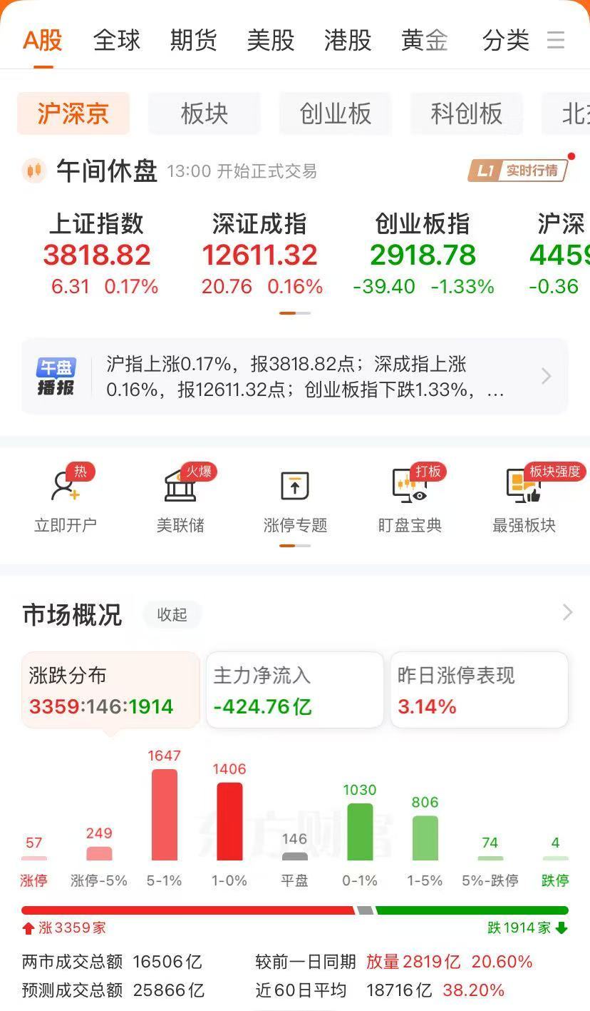 9月8日上午收盘,市场早盘震荡分化,三大指数涨跌不一,沪指小幅上涨,创业板指盘中跌幅收窄。沪深两市半日成交额1.65万亿元,较上个交易日放量2819亿元。