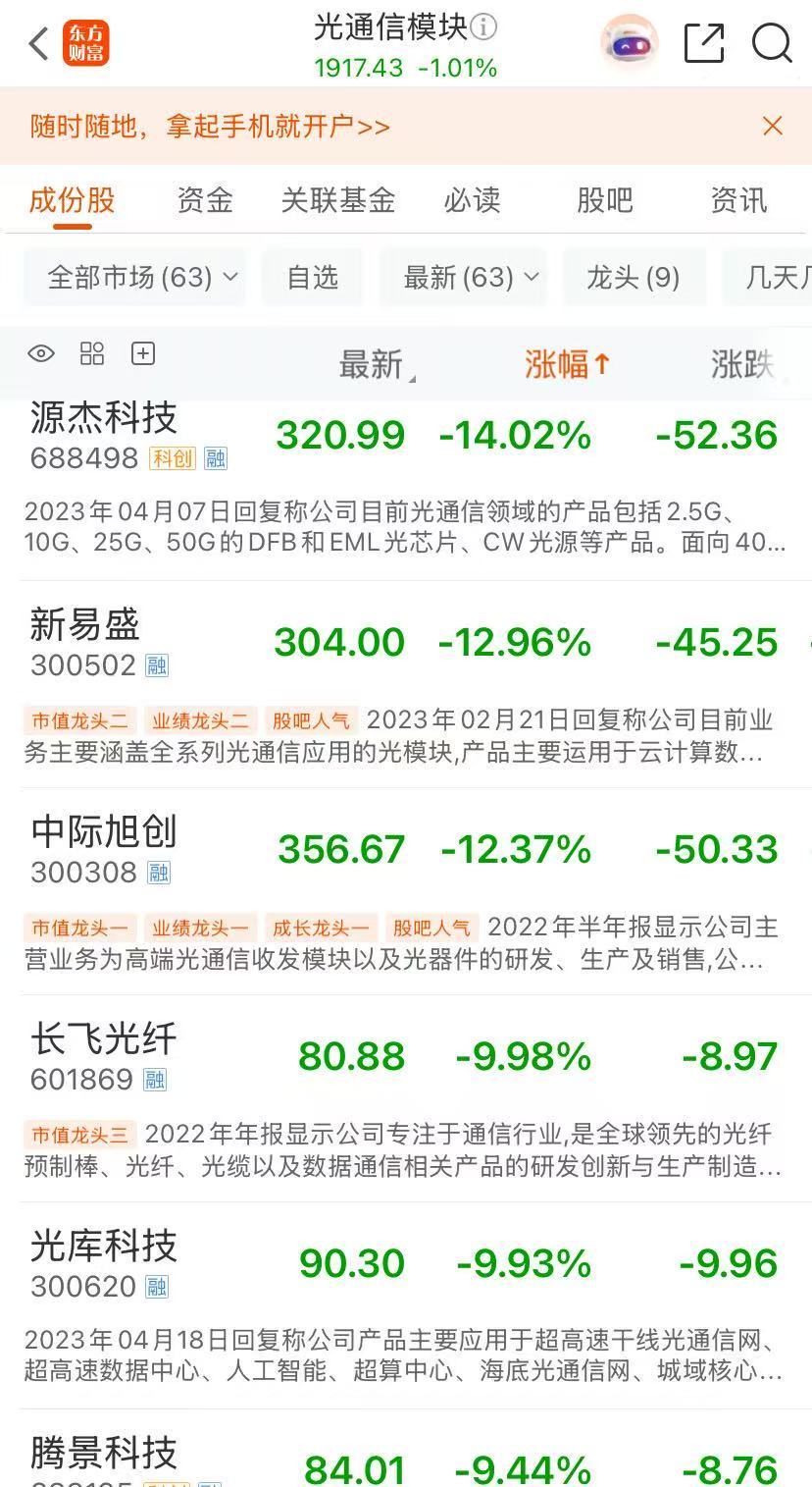下跌方面,算力硬件集体下跌,“易中天”大跌,新易盛、中际旭创跌超10%,天孚科技跌8.45%,胜宏科技、工业富联跟跌。
