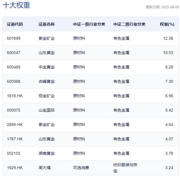 中证沪深港黄金产业股票指数主要权重股