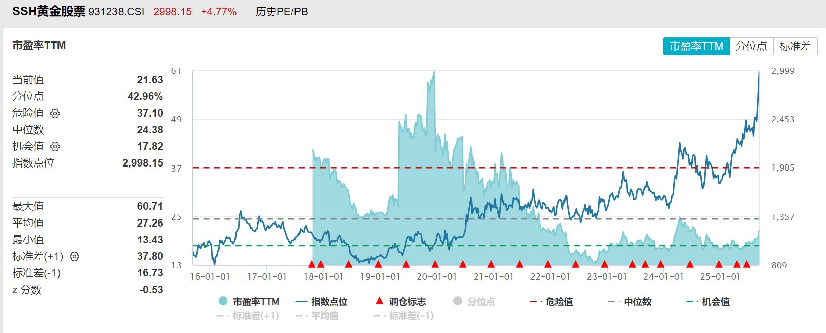 在降息预期、对美经济担忧、美元信用削弱等多重因素利好下,上涨趋势有望延续。黄金股票整体走势与金价走势呈正相关的关系,金价上涨有望为黄金股票贡献利润弹性。黄金股票ETF(517400)的标的指数是中证沪深港黄金产业股票指数,该指数从A股和港股市场中选取50只涉及黄金采掘、冶炼及销售等业务的上市公司证券作为指数样本,覆盖黄金采掘、冶炼、销售等全产业链环节,也包含黄金珠宝板块公司,有望受益于新消费催化。当前黄金股票的估值处于历史中等水平,投资者可以关注黄金股票ETF(517400),把握黄金全产业链的投资机会。