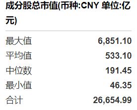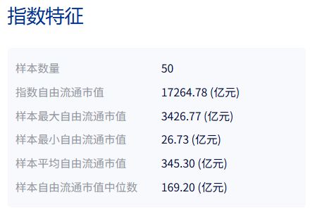 目前指数的成分股共有50只,个股的平均市值约为533亿元。
