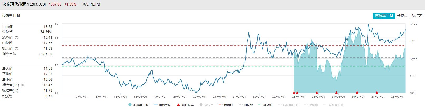 最后来对比两个指数的估值水平。Wind数据显示,目前中证能源指数的市盈率TTM还在历史40%分位以下,但是中证国新央企现代能源指数的市盈率TTM已经回升到历史70%分位以上,这一点从近一年的收益情况也能看出,近一年中证国新央企现代能源指数的涨幅更大。