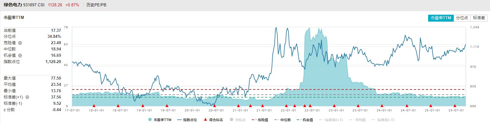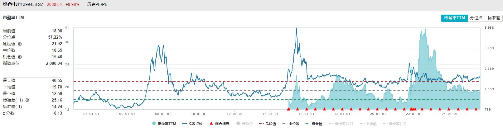 再来对比两个指数目前的估值水平。Wind数据显示,国证绿色电力指数目前的市盈率TTM回升到了历史50%分位以上,而中证绿色电力指数目前的市盈率TTM还在历史35%左右分位。