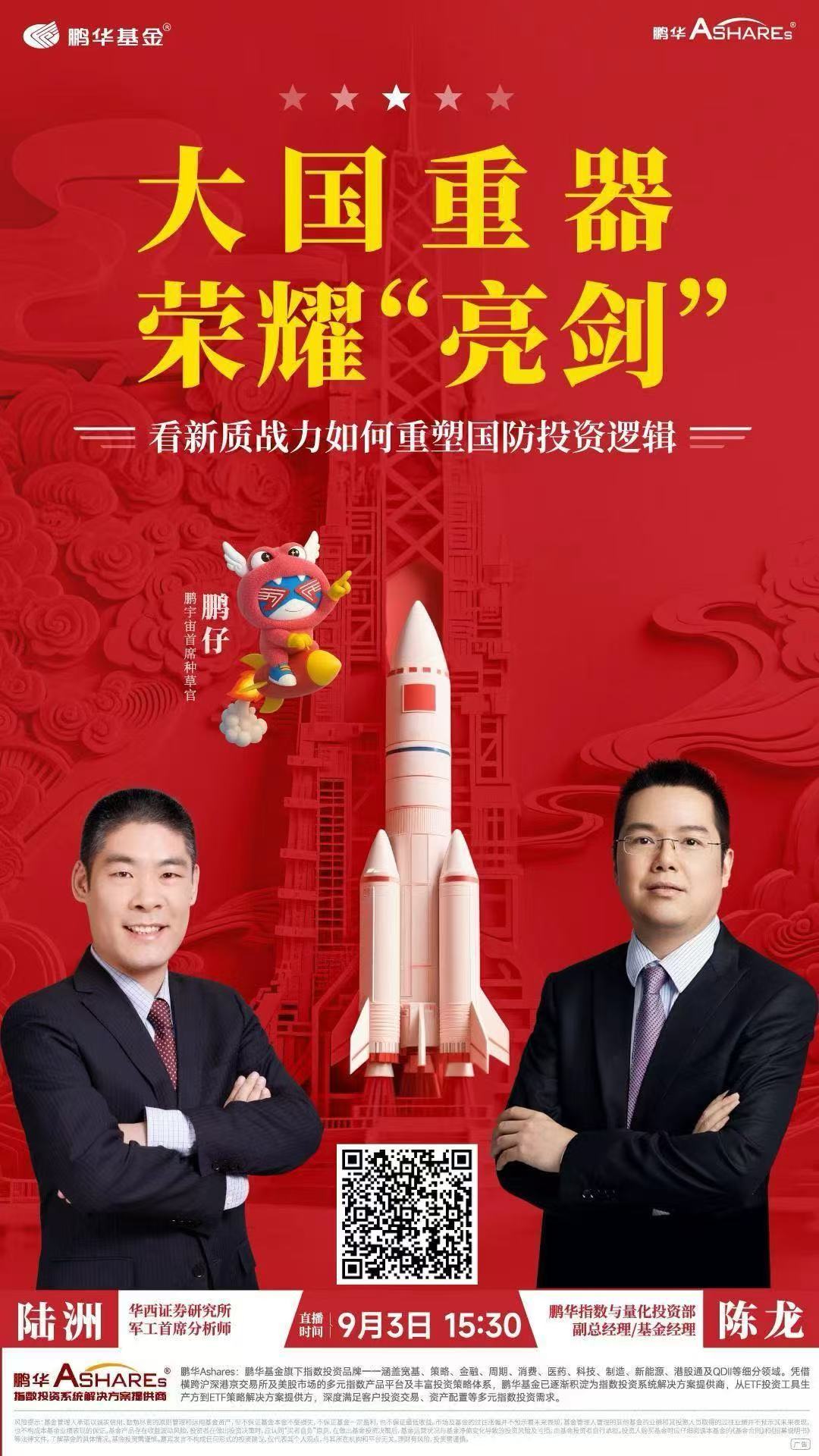 今年以来,国防板块催化不断,中证国防指数表现亮眼。9月3日15:30,鹏华国防ETF基金经理陈龙与华西证券军工首席分析师陆洲将为您联袂解读军工产业新机遇与投资逻辑。新装备技术突破如何重塑军工行业估值体系?军贸出口潜力与“军转民”技术如何打开行业成长空间?当前军工板块是否具备长期配置价值?欢迎收看。