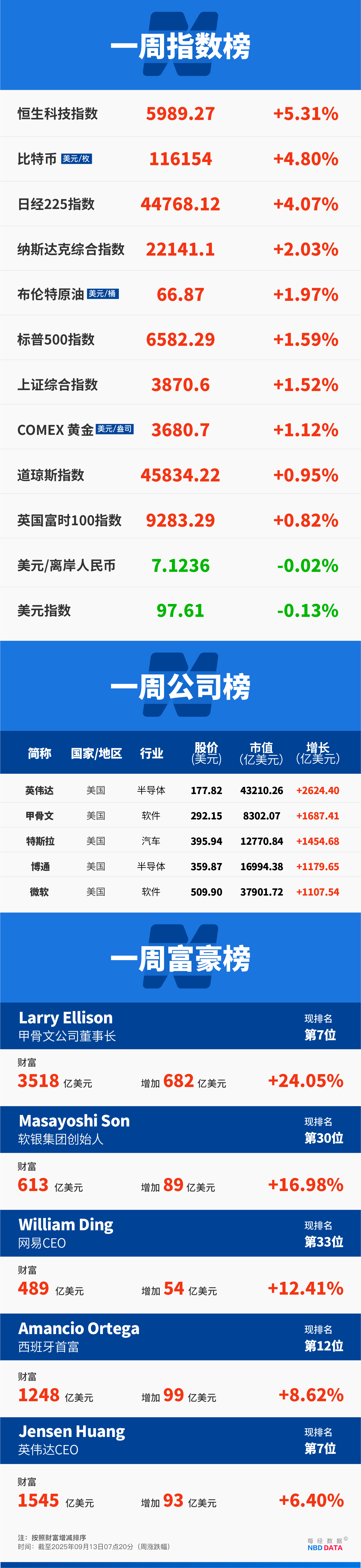 美联储“豪赌”50基点降息?历史记录敲响衰退警钟;年仅22岁,柯克案枪手遭父亲“举报”后落网;法国主权信用评级被下调,新总理上任首日爆发抗议潮;马斯克、埃里森争首富,相差逾1000亿美元;超级央行周开启,三大央行将决定利率。