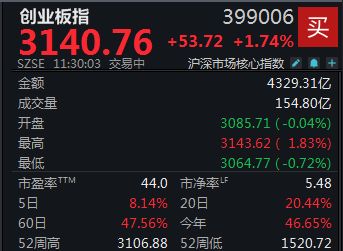 半日上涨1.74%,创业板指再创阶段新高