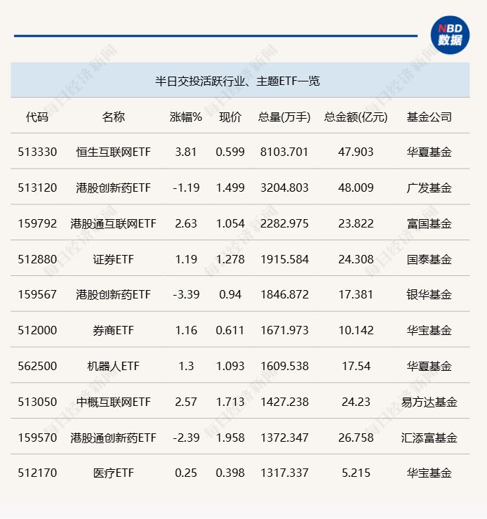 9月17日上午,互联网概念相关ETF交投非常活跃,恒生互联网ETF(513330)半日成交8103.7万手,半日成交金额为47.9亿元,港股通互联网ETF(159792)和中概互联网ETF(513050)半日成交金额也均在20亿元以上。