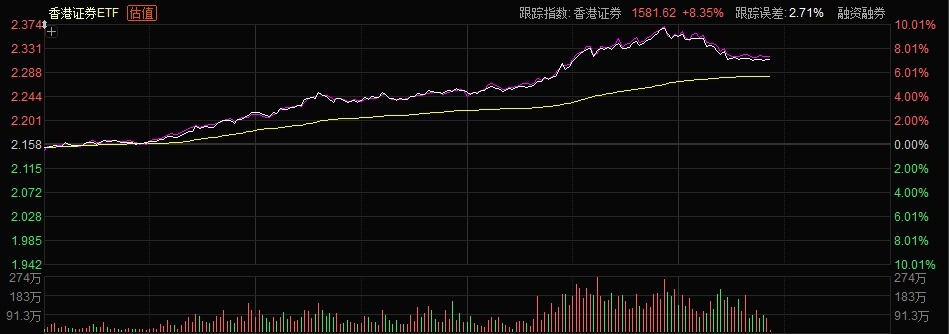 在个股的带动下,相关ETF同步大涨,如香港证券ETF盘中大涨10%左右。