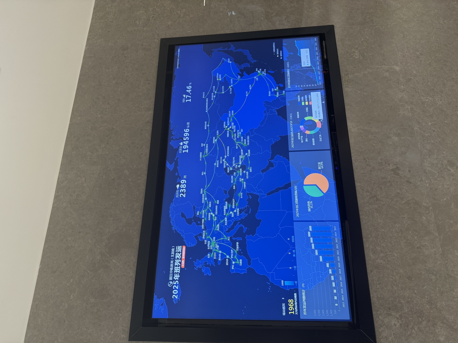 9月26日,义新欧贸易服务集团内展示的列车开行情况 图片来源:每经记者 黄海 摄
