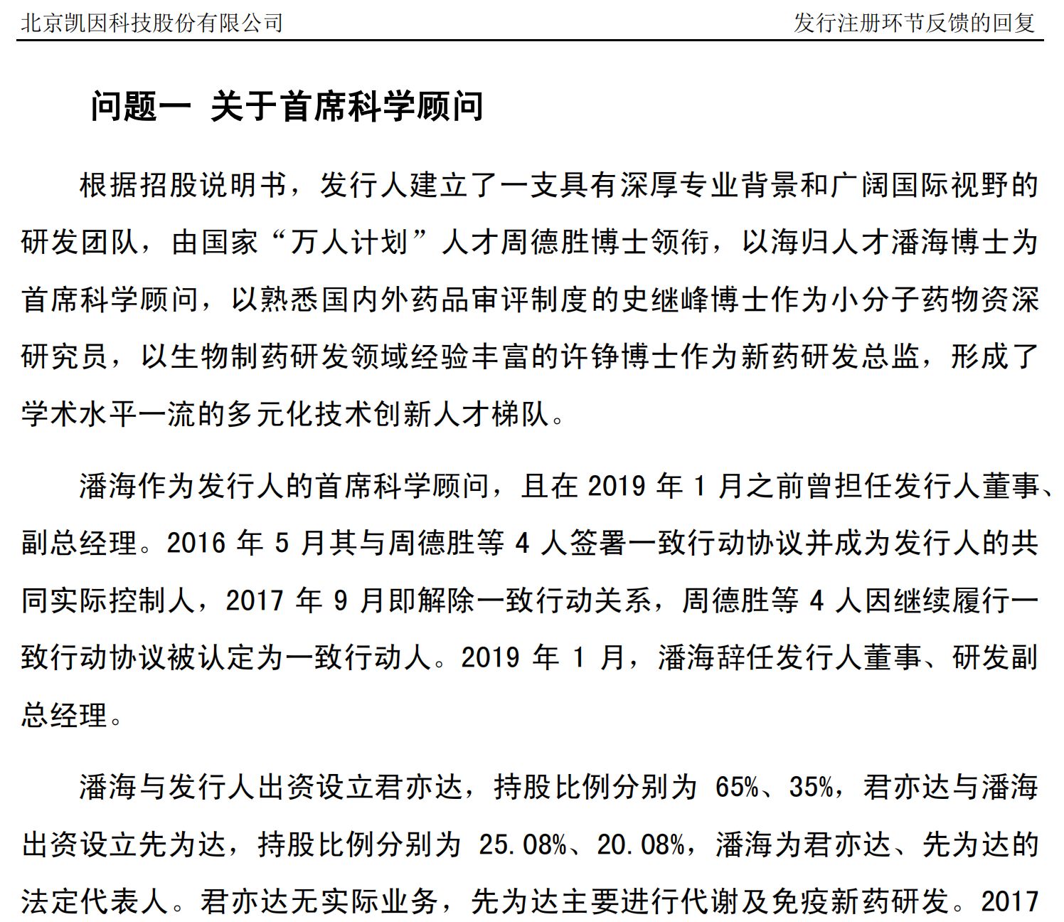 凯因科技方面曾解释称,潘海是因筹划个人创业,解除了与创始团队的一致行动协议,于2019年1月后不再担任董事及高管职务,仅担任首席科学顾问。